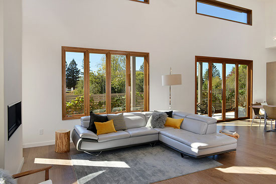 Timeless mid-century design with all the modern conveniences in Healdsburg, CA. Flush profile amenities, high ceilings and ample windows create a sleek, spacious and bright home. Interior design by Maria Flores. Design and build by Mota Contracting, Inc.