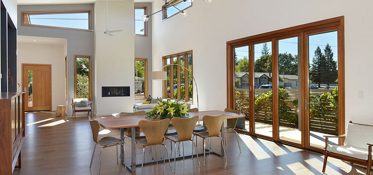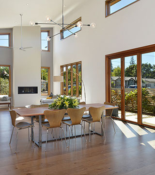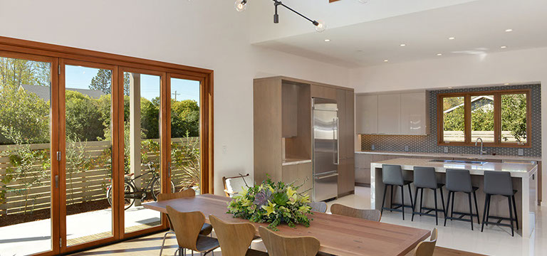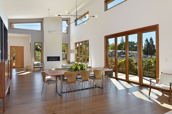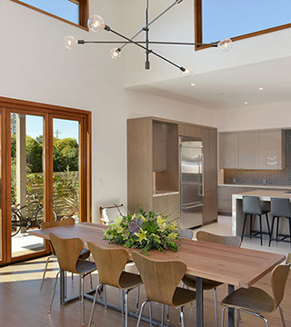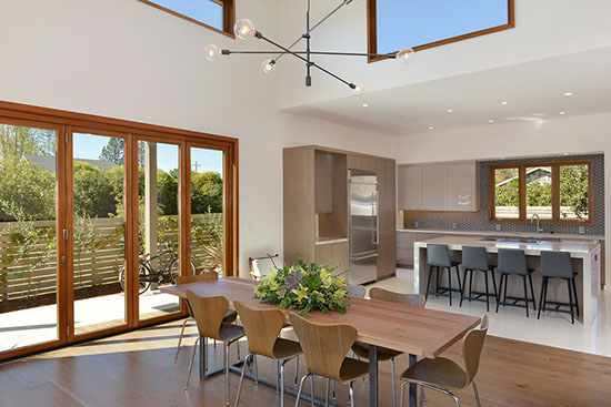 Timeless mid-century design with all the modern conveniences in Healdsburg, CA. Flush profile amenities, high ceilings and ample windows create a sleek, spacious and bright home. Interior design by Maria Flores. Design and build by Mota Contracting, Inc.